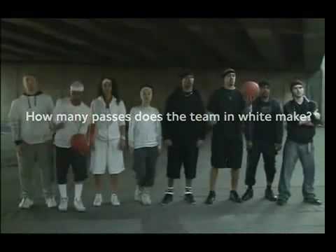 - Después pasamos al visionado de tres vídeos, el primero: sobre la concentración bastante interesante donde tienes que saber cuantos pases realiza el equipo blanco y al estar tan concentrado en contar puedes dejar de apreciar otras cosas que son importantes o curiosas: